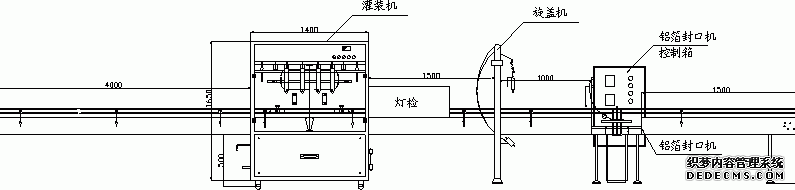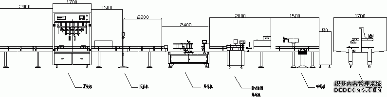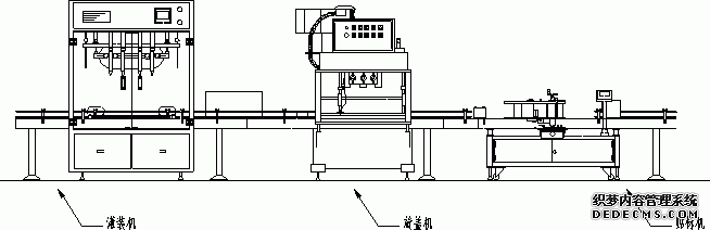 | 方案設(shè)計一:灌裝機+壓蓋機+貼標機+自動膠帽熱縮機+噴碼機+封箱機 | ||